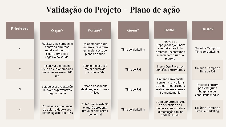 A análise feita junto com o resultado que podemos obter visa diminuir o custo do orçamento do plano de saúde dos colaboradores, através das técnicas certas junto com seu plano de implementação.
